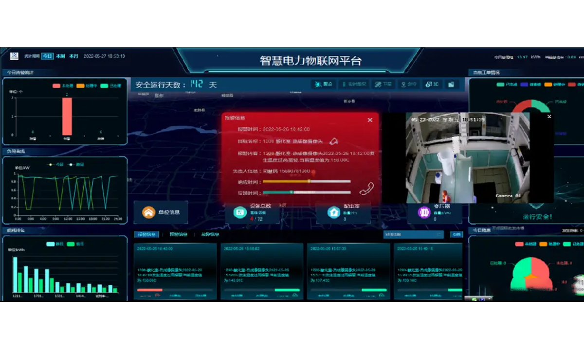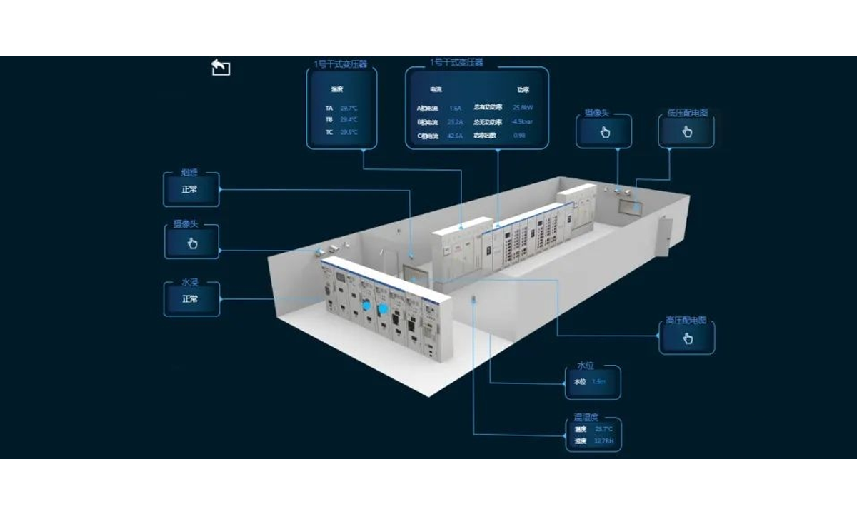 实现对临电线路电压、电流、漏电、线缆温度等多项电气参数的实时采集,实现对电气运行状况及安全态势的全天候在线监视。
