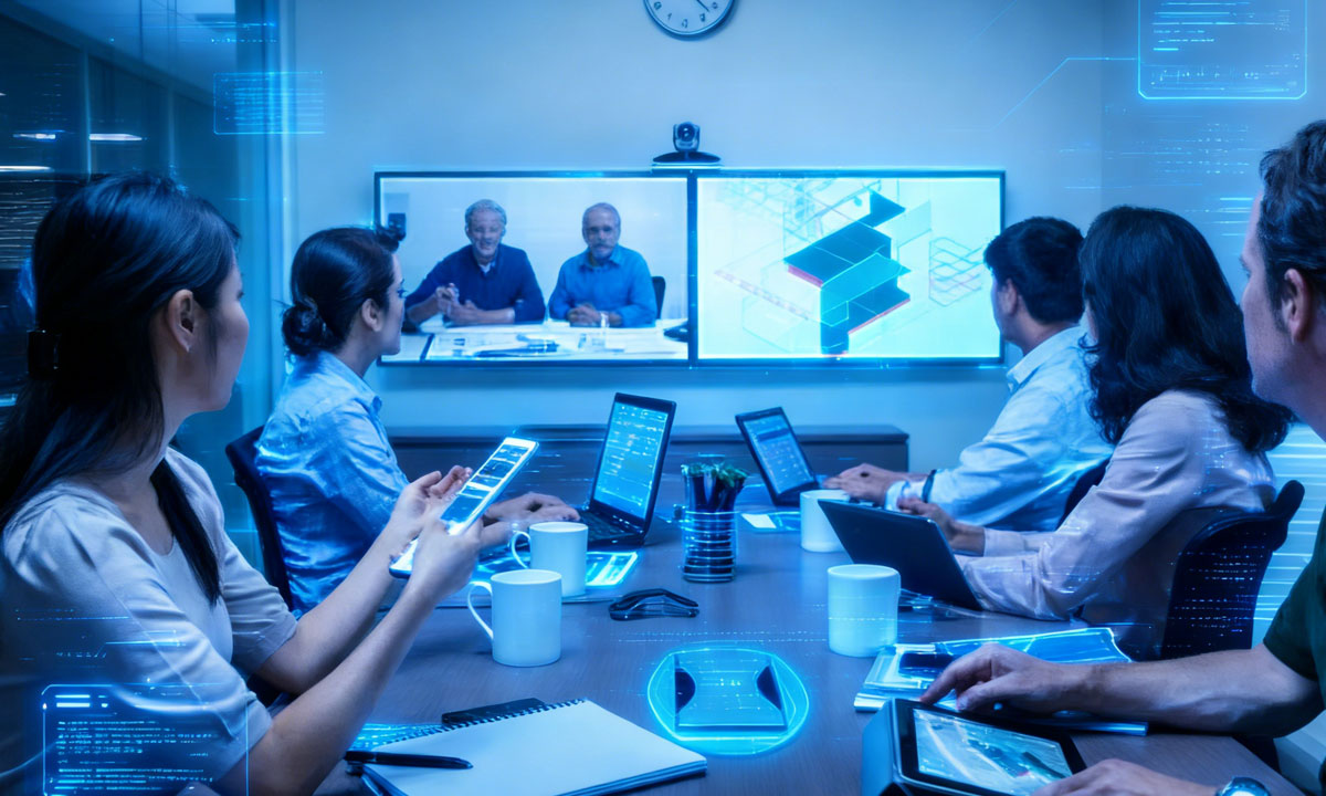 无人机、塔吊摄像头、安全帽摄像头等现场画面实时切入会议,远程专家"第一视角"指导复杂节点施工。