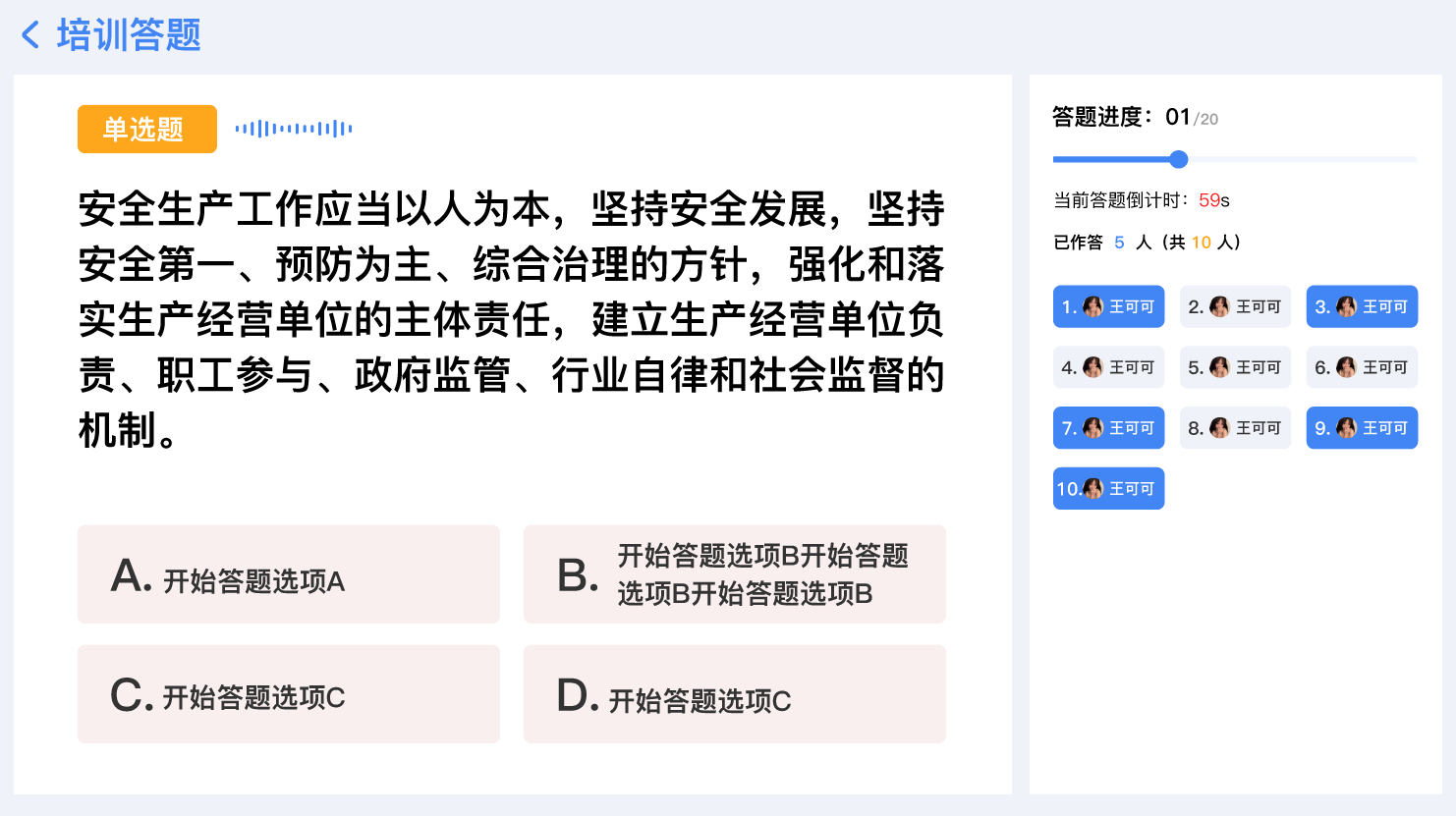 触屏答题,自动判卷,成绩实时同步至住建局实名制平台 。