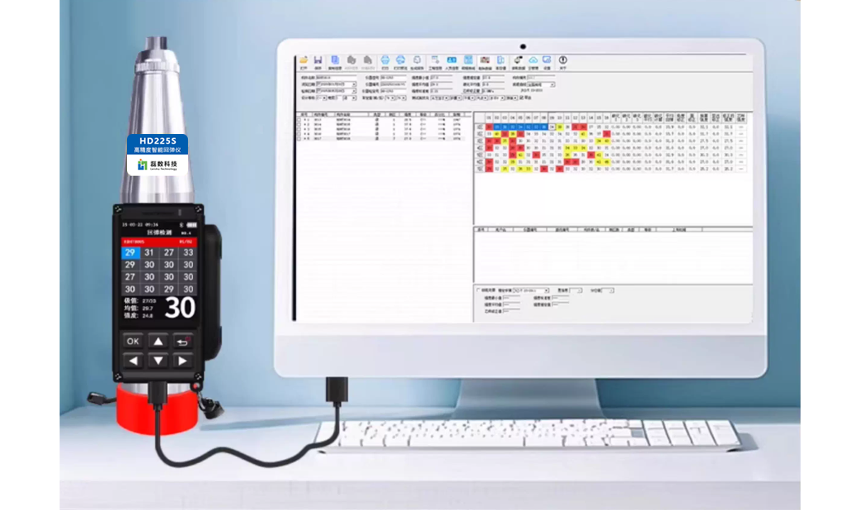 弹簧驱动重锤,回弹值由非接触光栅/图像传感器采集,±1 分度精度,杜绝人工读数误差。