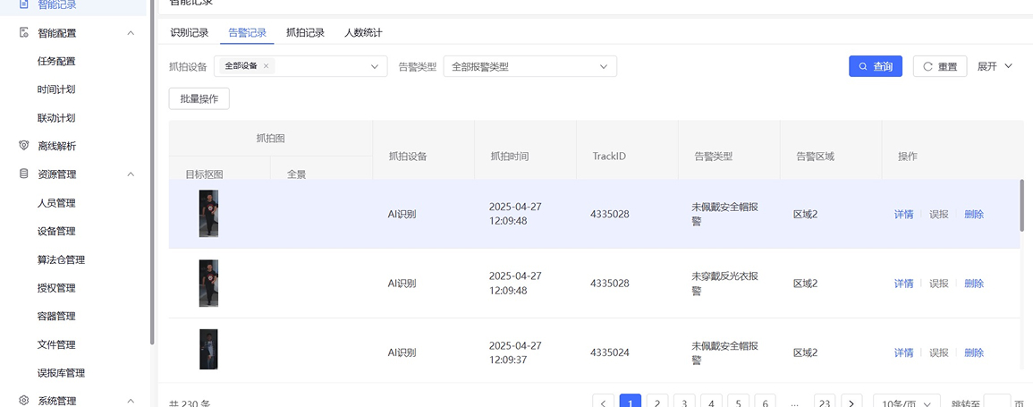 AI智能算法,分析现场异常行为,视频留痕,比对分析