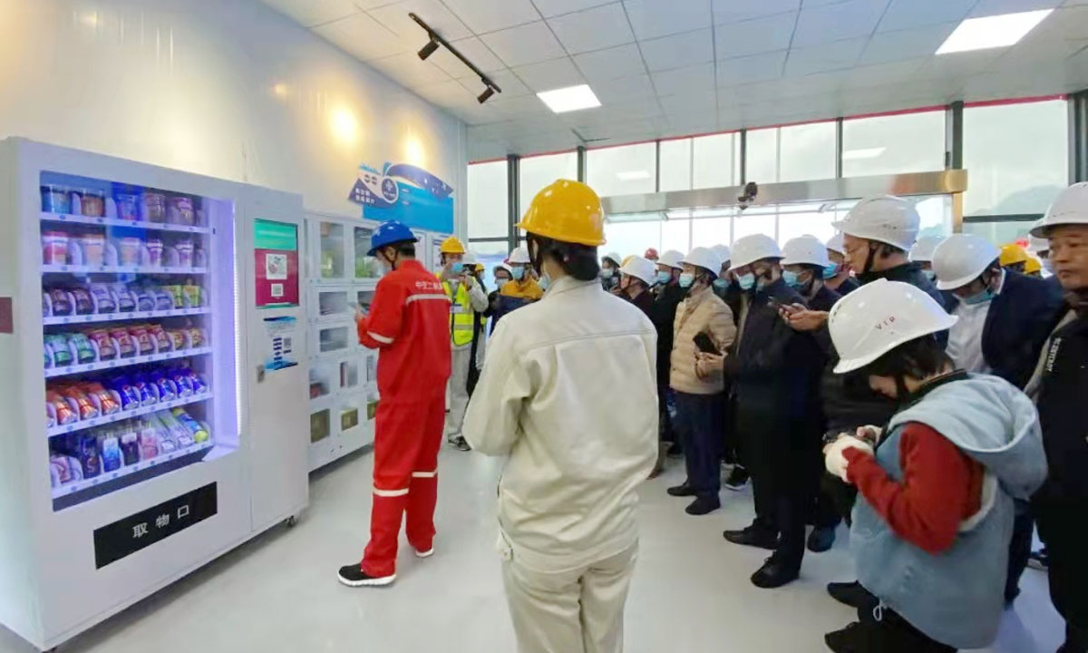商城展示商品(日用品、劳保用品、小家电、话费充值等),自助下单现场自提,积分不足可现金补差。 -
